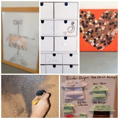 Ein schwieriges 'Loslassen' ist es für mich, die Schachteln mit den aufgehobenen Basteleien meiner Kinder durchzuschauen. Nach beinah 20 Jahren Muttersein und der damit verbundenen angesammelten Menge an kreativen Bildern, Skulpturen, Genähtem und Geschnitzten, gilt es jetzt, diese zu reduzieren.